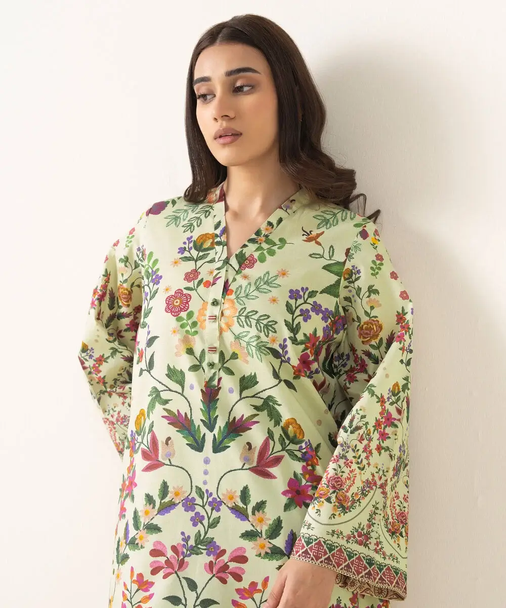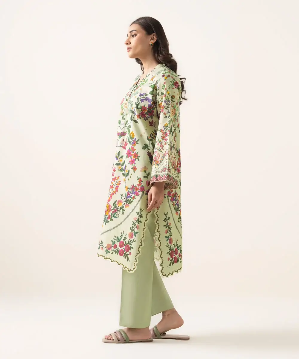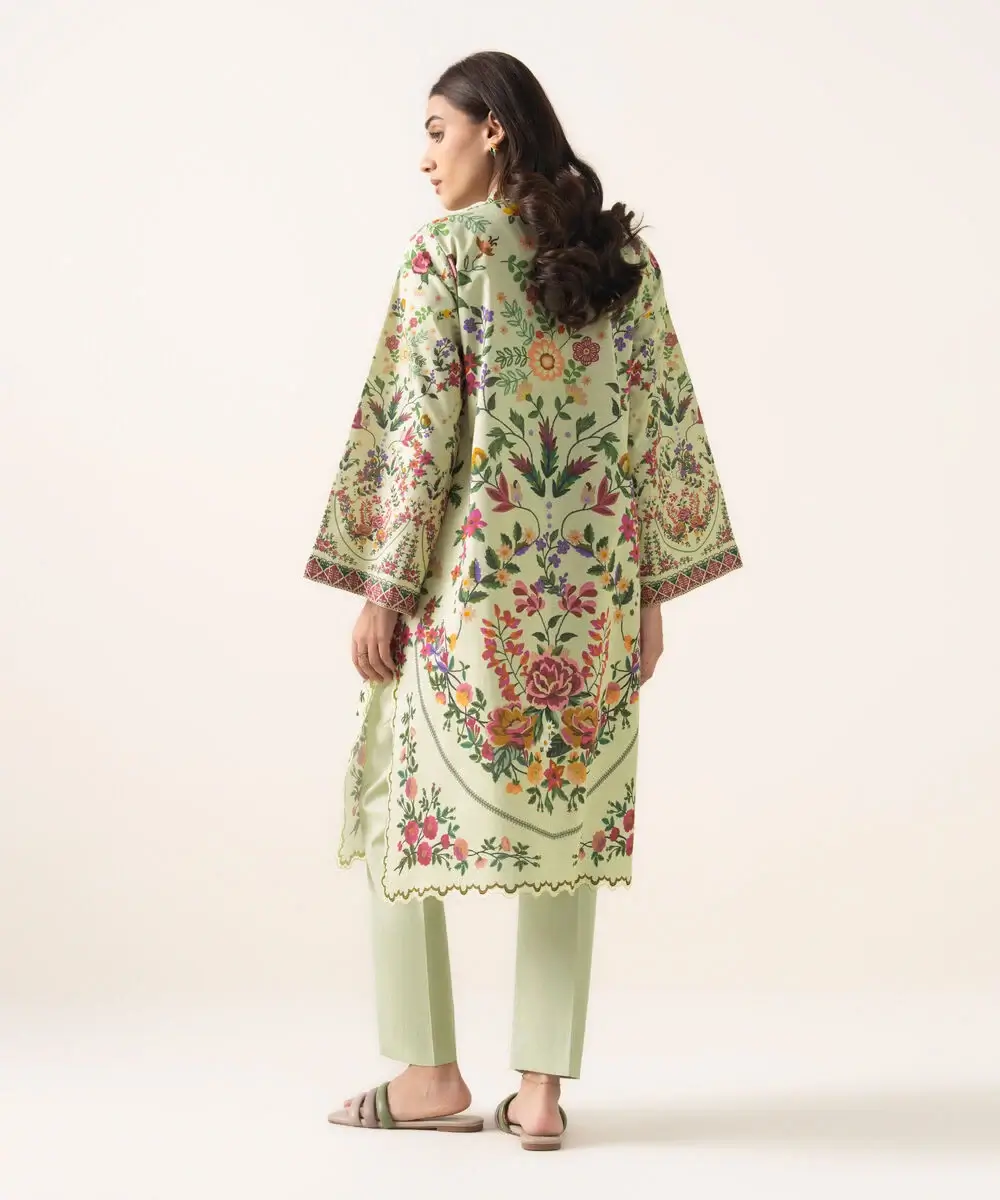 Make a statement with our two-piece printed off-white and multicoloured ensemble featuring a lawn shirt paired with cotton trousers.
