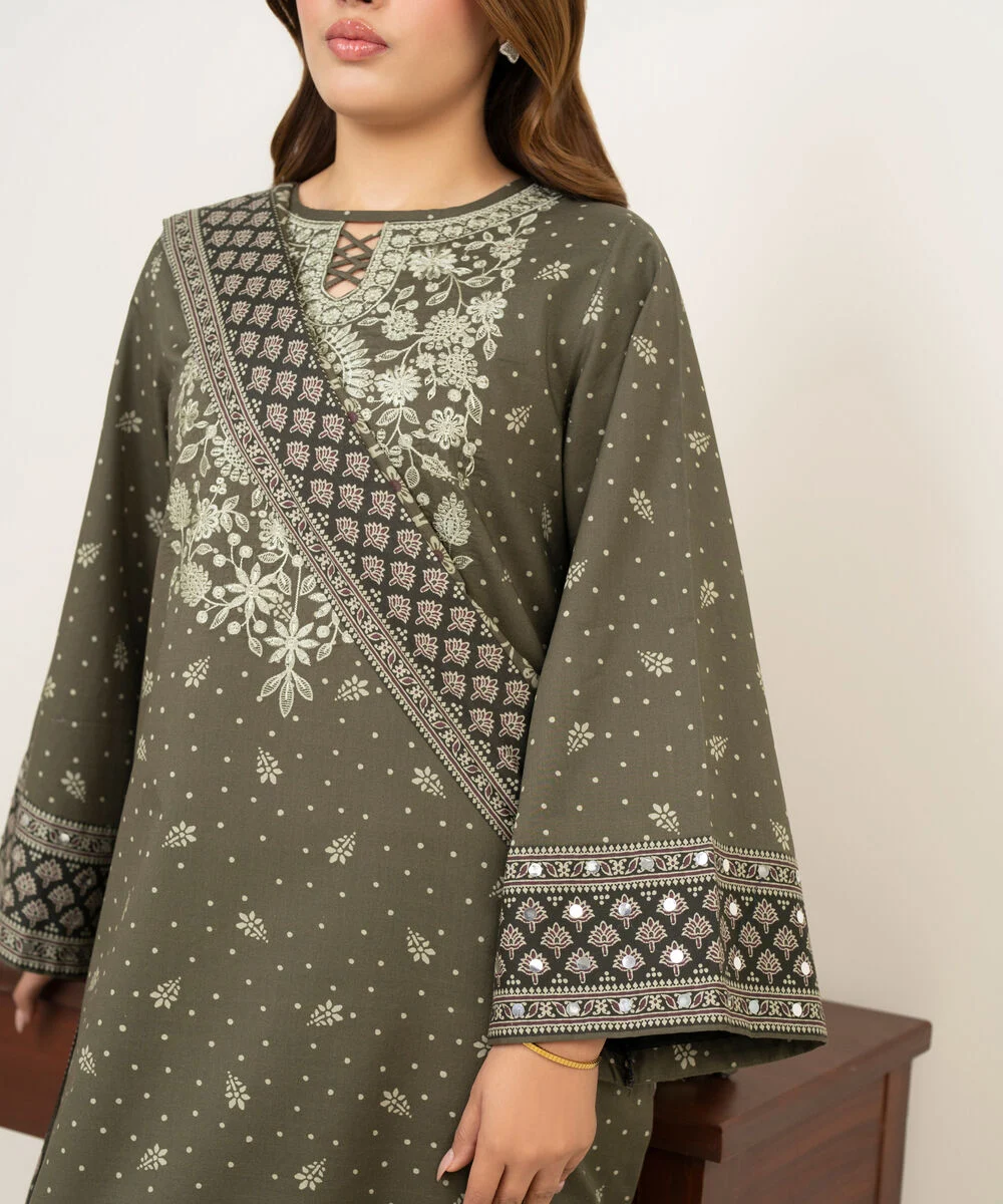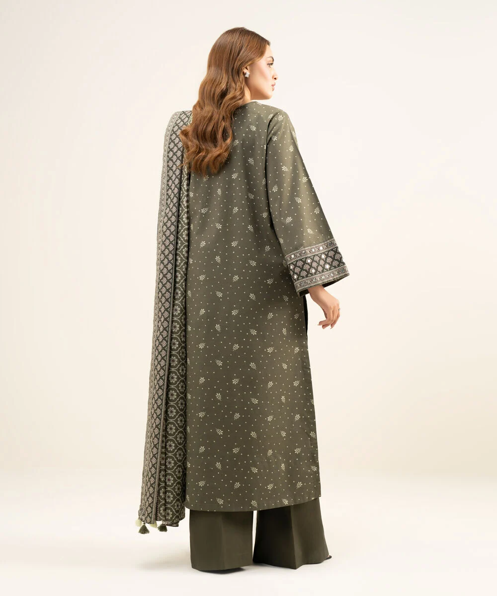 Make a statement with our three-piece embroidered pink ensemble featuring a lawn shirt paired with a voile dupatta and cotton trousers.